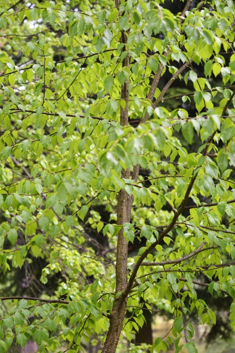 Dorastá do výšky až 30 metrov a priemer kmeňa vo výške 1,3 m je do 60 cm. Dožíva sa do 150 rokov. Kôra sa odlupuje v pásoch a má smotanovú až bronzovú farbu.