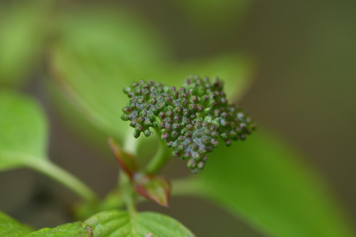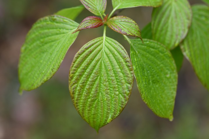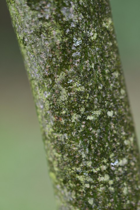 Ker alebo malý strom, vysoký6-8 m, s výrazne vodorovným rozvetvením. Konce konárov sú obrátené hore. Kôra a vetvičky sú zelené až červenofialové. Zo širokých strapcov voňavých bielo-krémových kvetov s plochým vrchom sa stávajú strapce červenofialových bobúľ. Listy jesene sú matne hnedé.