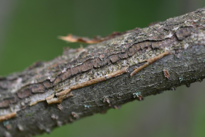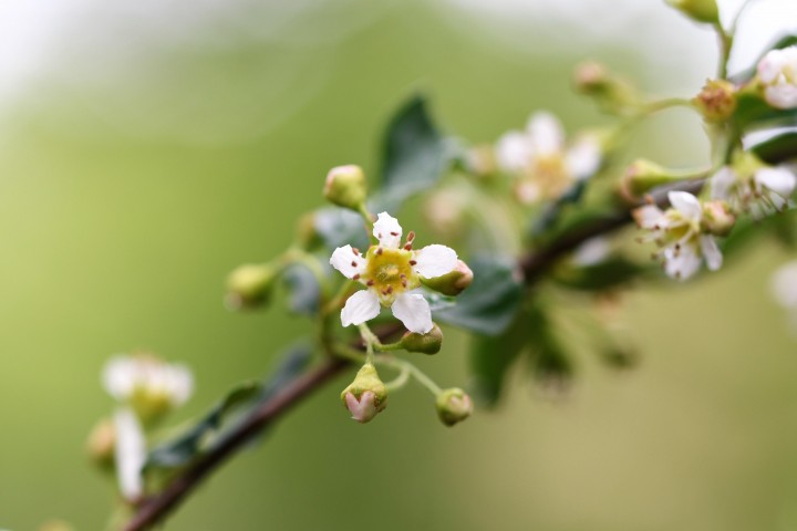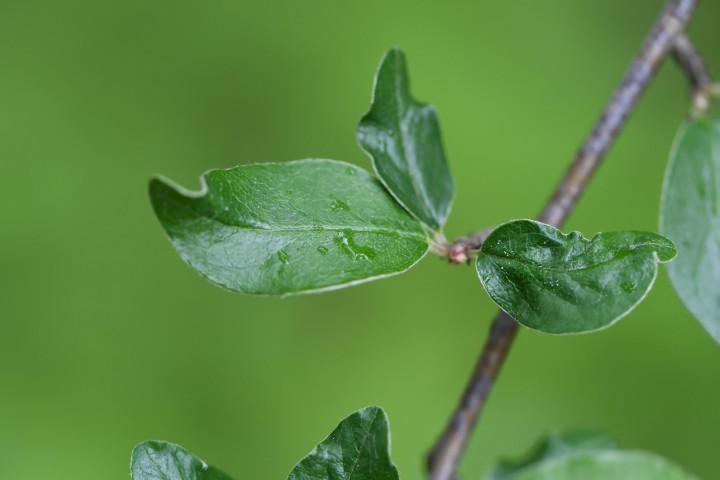 Je to ker, ktorý dosahuje výšku 1,5 – 3 m. Listy na výhonkoch sú takmer okrúhle. Kvitne v máji. Kvety sú bielej farby.