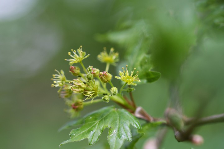 Strom 12-15 (-25) m vysoký, koruna guľovitá, letorasty s korkovitou kôrou, purpurovo hnedé. Listy 5-laločné, 10-15 cm široké, báza hlboko srdcovitá, laloky tupo alebo ostro špicaté, tupo zubaté a slabo laločnaté, zvrchu tmavo zelené, naspodku modrozelené a obzvlášť na žilkách chlpaté, stredný lalok má na každej strane ešte 2 veľké zaoblené laloky alebo zuby. Kvety žltozelené, v 5-8 cm dlhých vzpriamených chocholíkovitých strapcoch po 10-15, kvitne v máji. Plody zamatové, krídla vodorovné, skrútené, 2-3 cm dlhé.