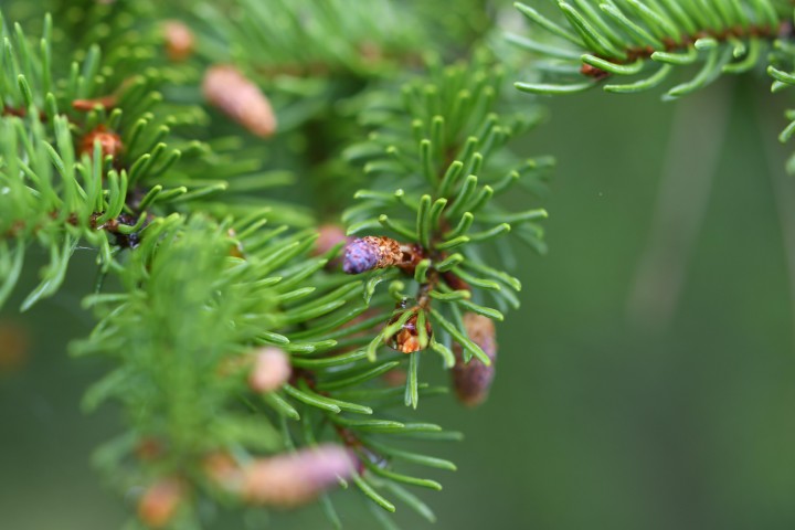 Vo svojej domovine dorastá až 40 m výšky. Dožiť sa môže až 400 rokov, koruna je úzko kužeľovitá, borka je šedohnedá až červenohnedá. Ihličie je na priereze štvorhranné 1-2 cm dlhé, výnimočne 3cm dlhé, žltozelenej až tmavozelenej farby, niekedy sivej. Šišky sú malé 3-4 cm dlhé, vajcovitého tvaru, lesklé, počas zrelosti oranžovohnedé.