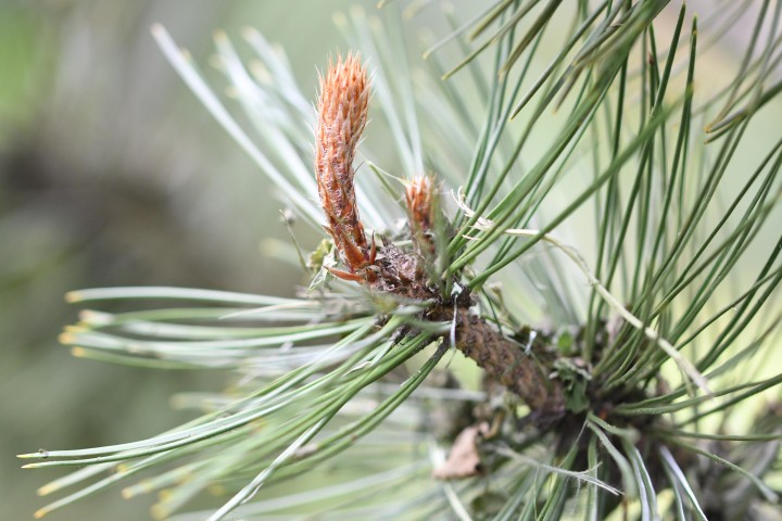 Strom je podobný borovici čiernej, až 35 m vysoký, rozvetvený až k zemi. Koruna kužeľovitá, borka tenká, popolavá, dole hranato šupinovitá. Vetvy a letorasty sú sivohnedé, letorasty sú na rozdiel od podobnej borovice čiernej, srienisté. Pupene pozdĺžne vajcovité, sivo-belavé s bielymi špičkami, bez živice. Ihlice po 2, dlhé 4 – 9 cm, štetkovité na konci vetvičiek, tuhé, lesklo zelené. Šišky jednotlivé, vajcovité, 7 – 8 x 2,5 cm, nezrelé tmavo fialové, zrelé hnedé. Semená okrídlené, elipsovité, 6 – 7 mm veľké.