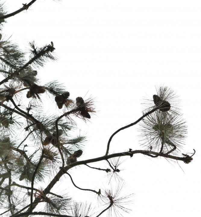 Je to až 45 m vysoký štíhly strom o priemere do 1,5 m s krátkymi a trochu previsnutými vetvami, ktoré tvoria širokú kužeľovitú korunu. Borka škoricovo hnedá, rozpraskaná v široké pásy. Letorasty sú svetlohnedé, ihlice sú väčšinou po 3 vo zväzku, silné, 12-20 cm dlhé, namodralo striebristo zelené s prieduchmi (v našich podmienkach má na vetvách max. 2-3 ročníky ihlíc, preto vzbudzuje pocit riedkeho zaihličenia). Šišky často krátke stopkaté, 12-26 x 5-8 cm.