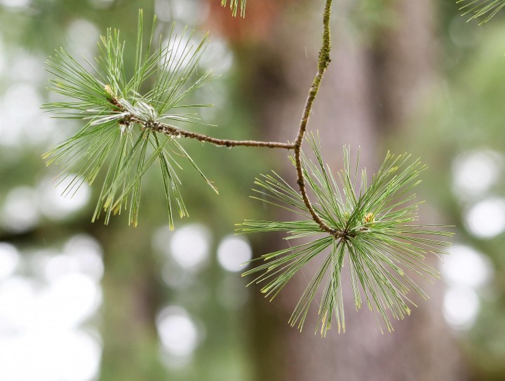 Strom dorastá do výšky 20–40 m, vo vyšších polohách i krovitého vzrastu. Koruna je kužeľovitá, hustá, nízko zavetvená. Kôra u mladých jedincov je striebristo šedá, hladká, u starších hnedošedá, šupinkovito rozbrázdená. Ihlice sú po 5 vo zväzku, zelené až šedozelené, ostro zašpicatené, zotrvávajú na vetvách až 3 roky.