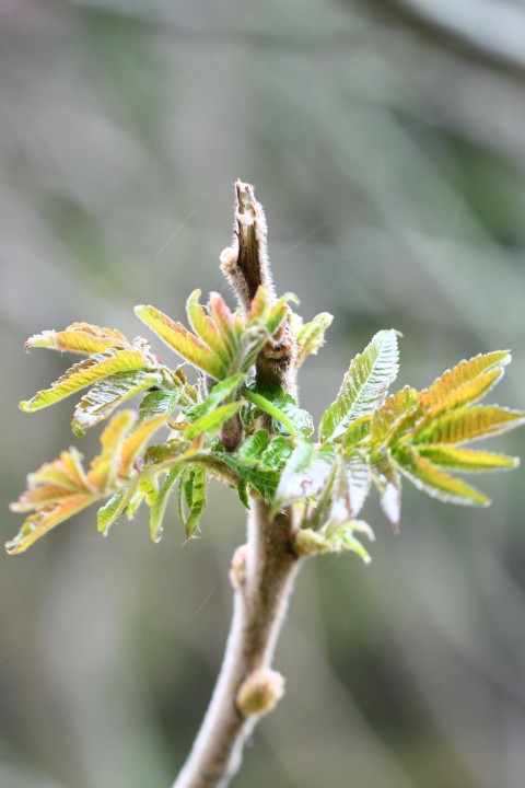 Drevina dekoratívneho vzhľadu, s riedkou korunou, vysoká 5 až 8 metrov. Kôra je hladká červenohnedá s vidlicovito vetvenými konármi, ktoré sú hnedo plstnaté. Listy sú striedavé, nepárno perovité, pomerne veľké, až 50 cm dlhé, až s 31 až 37 kopijovitými na okraji vrúbkovanými lístkami, dlhými až 12 cm. Na jeseň sa sfarbujú do žltých až červených odtieňov. Na konci konárov sa v júni až júli vytvárajú husté metliny jednopohlavných kvetov. Samčie kvety sú žltozelené, samičie tmavočervené. Na jeseň sa vytvoria červené šúľkovité súplodia.