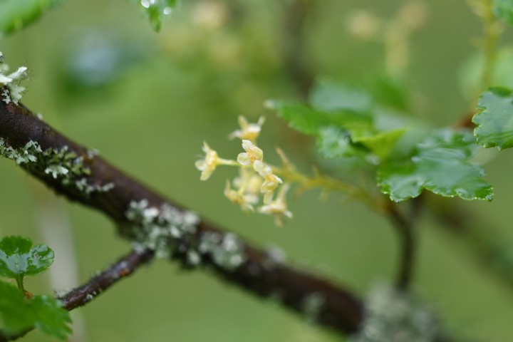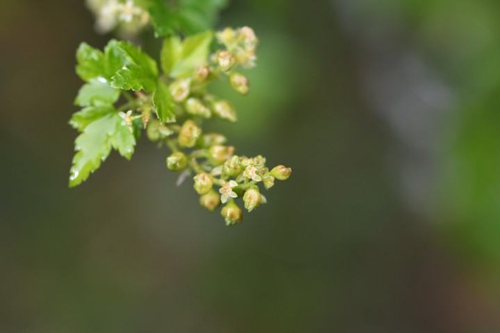 Vytvára hustý ker bez tŕňov vysoký až 2 m. Listy sú okrúhle až vajcovité, so zubatými okrajmi, trojlaločné s tupými lalokmi na konci. Stonka je maximálne 2 cm dlhá a má dlhé žľaznaté chlpy. Kvitne od apríla do mája. Kvetenstvom je strapcovité s mnohými drobnými žltozelenými kvetmi. Plody sú výrazné červené bobule bez chuti.