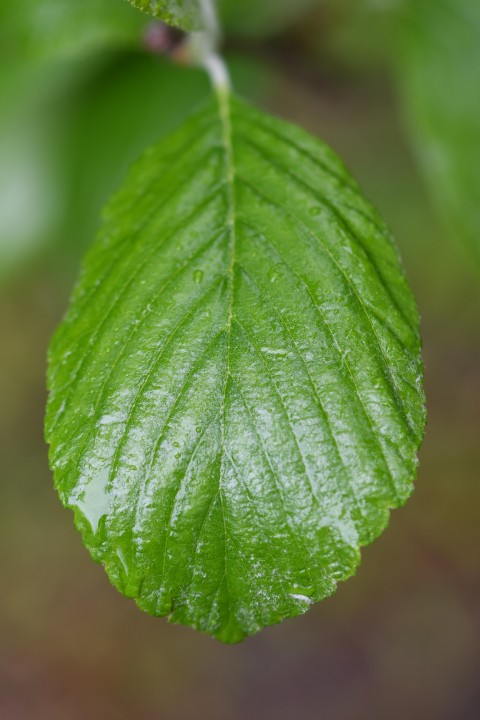 Tvorí vysoký ker alebo krovitý strom vyrastajúci až do výšky 8 m. Strom ma široko rozložitú korunu, dosahuje výšku 3–9(–18) m. Letorasty sú spočiatku šedoplstnaté, rovnako ako zimné pupene, neskoršie olivovohnedé a lysé. Má striedavé, stopkaté, klinovito vajcovité až okrúhle, dvojito pílkovité listy, ktoré sú z hornej strany tmavozelené, na opaku múčnato plstnaté. Kvety sú biele až žltobiele, päťpočetné. Tvoria koncové chocholíkové metliny. Plody – malvice sú pomarančovo karmínové. Majú múčnatú dužinu. Dorastajú do veľkosti menšej čerešne.
