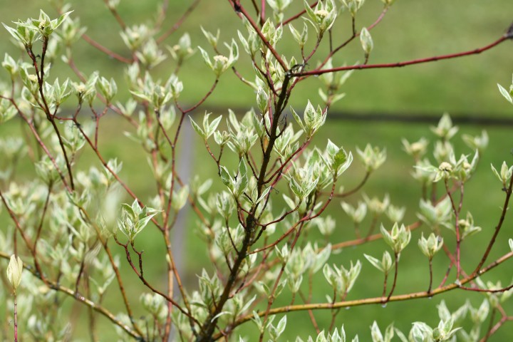 Swida alba 'Albovariegata' je vzpriamený, neskôr rozložitý ker dosahujúci výšku 2 – 2,2 m so široko kopijovitými, bielo lemovanými listami, na jeseň vyfarbuje do červena, konáre sú červené. Kvitne v máji až júni.