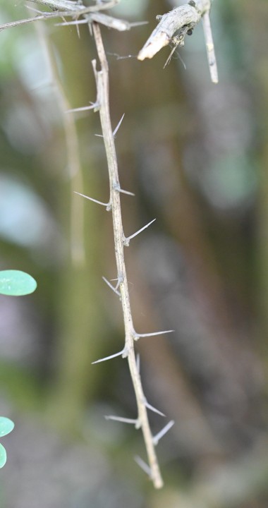 Je to ker, ktorý dorastá do 3 m výšky, má hladkú kôru a konáriky sú pokryté tŕňmi. Tŕne vznikli premenou listov. Sú trojdielne až sedemdielne, 10–15 mm dlhé. V pazuchách vyrastajú zväzočky krátko stopkatých tuhých listov. Kvitne v apríli až júni. Kvety sú na skrátených konárikoch v ovisnutých mnohokvetých strapcoch. Sú žltej farby a intenzívne voňajúce.